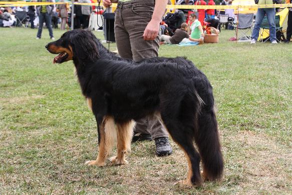 typvoller Kopf, korrekte Ohren, mittelbraune Augen, komplettes Scherengebiß, gerader Rücken, gerade Läufe, korrekt getragene Buschrute, in der Bewegung flüssig, dabei im Mittelfuß nicht ganz fest, freundliches Wesen.